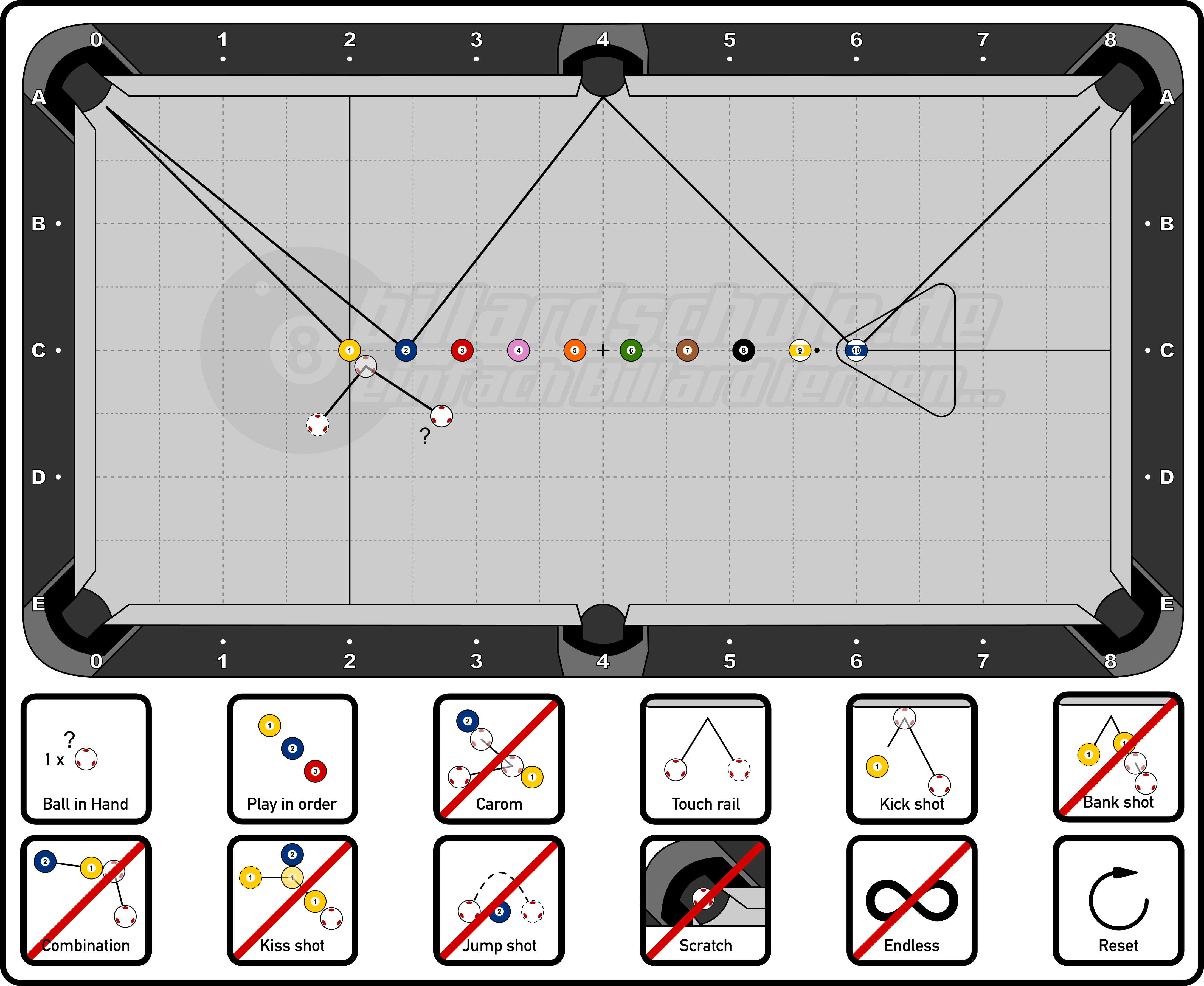 - Alternative Playing Ability Test, Alternative Playing Ability Test Level 2, APAT, APAT Level 2, corner pocket, pool, Pool Billiard, Poolbillard, position play, Ralph Eckert, side pocket, small, small position